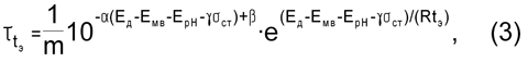 Поскольку накопление во времени разрывов химических связей есть процесс старения полимера, параметр Ед связан с долговечностью георешетки экспоненциальной зависимостью: